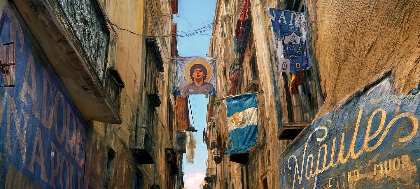 "En cada rincón, en cada mural, en las calles, en la vida, un Dios permanece en los napolitanos."